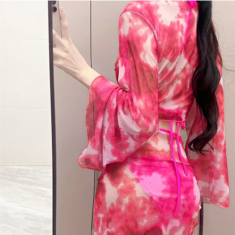 The TideBloom Set is a dreamy 4-piece that blends tie-dye vibes with curve-hugging energy. Whether youβre beachside or poolside, this oneβs a full vibe.